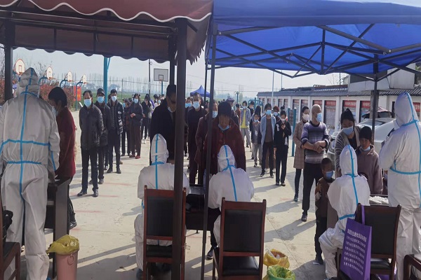 祁集镇党员干部牢牢坚守村(社区)防控一线,主动亮身份、当先锋、作表率,以实际行动展现共产党员的责任担当。所有村(社区)实施封闭式管理,设置疫情防控检查点7处,镇村干部24小时轮流值守,所有人员进入村庄一律戴口罩、测温、扫“安康码、行程码”,出示核酸检验报告,共划分155个网格,招募130名志愿者,第一轮全员核酸检测共采集样本9249人。