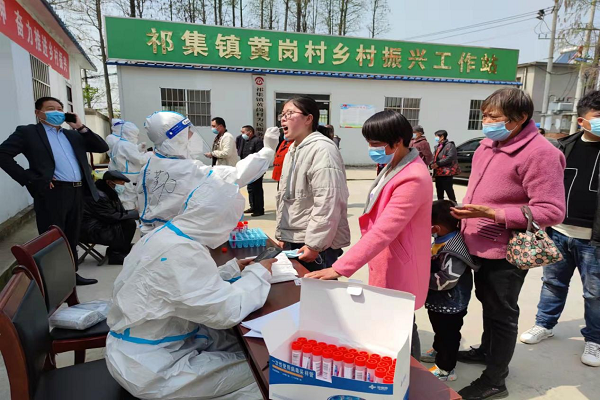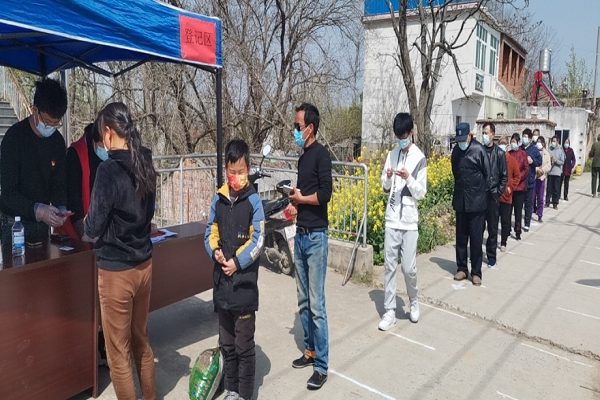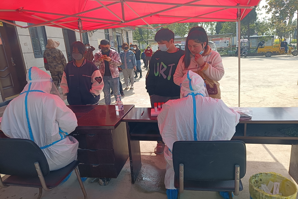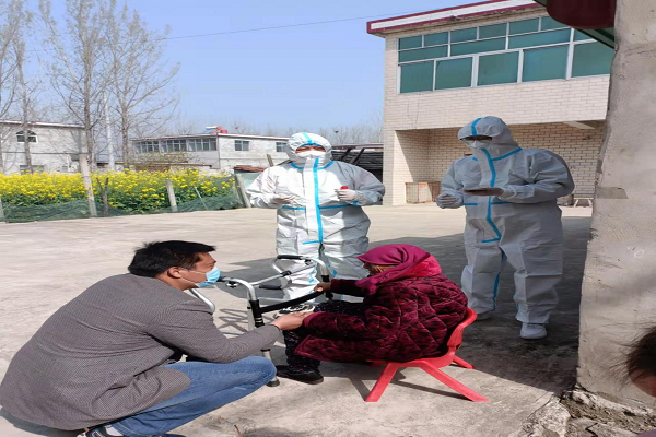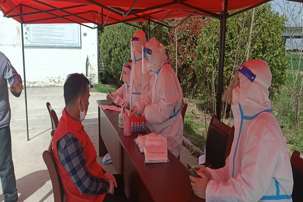 贺疃镇秦万村:3月28日,贺疃镇秦万村驻村工作队协助村“两委”对全村人员进行核酸检测,驻村工作队主动做好群众现场疏导、信息录入等工作,并组织村卫生室的医生对居家隔离和老弱病残等人员进行上门服务,确保核酸检测工作全覆盖。