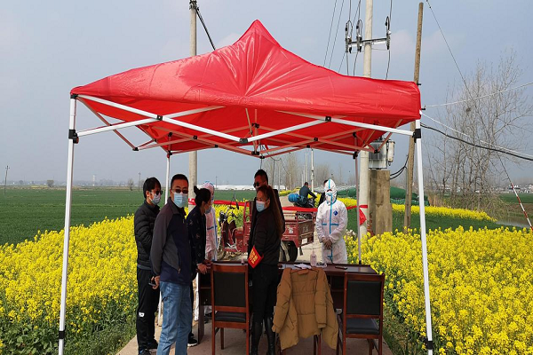 架河镇杨集村:自疫情防控工作开展以来,架河镇杨集村驻村工作队积极响应号召,与村干部和党员群众一起织密疫情防控网,守好疫情防控“最后一公里”。驻村工作队在杨集村出入口进行交通管制,对外来人员进行防疫核查,做到一车一查、一人一检。对进出村庄的人员实行出入证管理,并对本村内流动人口、返乡人员开展入户排查,实时掌握人员动态。在村主要道路交汇处悬挂标语,通过循环播放“大喇叭”、微信推送等方式,广泛宣传疫情防控措施。配合村“两委”开展全村全员核酸检测工作,在采集点规范设置等候区、登记区、采样区等,进行核酸采集和人员引导工作,并对行动不便的村民进行上门采样,确保应检尽检。