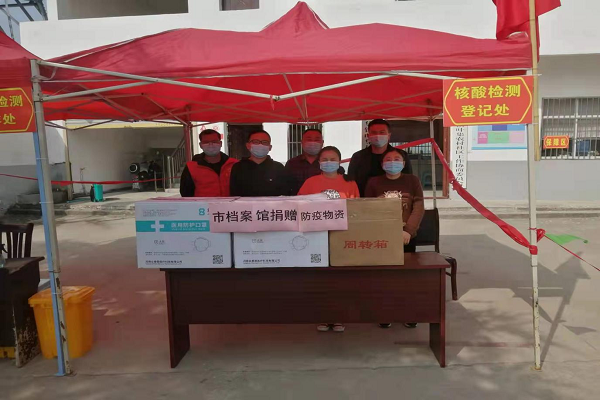 芦集镇叶集村:疫情发生以来,市档案馆高度重视芦集镇叶集村的疫情防控工作,针对叶集村防疫物资短缺问题,市档案馆多方联系,积极筹措,为叶集村送来医用防护服套装30套,医用口罩40包,医用酒精、免洗手凝胶及酒精湿巾等各20包,有力支援了叶集村疫情防控工作。