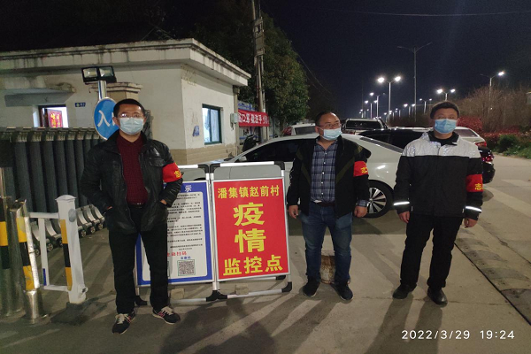 潘集镇魏圩村:面对突发疫情,驻村工作队第一时间转为“疫情防控工作队”,组织党员志愿服务队在村出入口设立卡点,坚持日夜巡逻、严密布防;迅速摸排上海、合肥和凤台等地返村人员情况,并对其进行居家隔离观察;深入核酸检测一线,做好核酸检测信息采集和人员秩序引导。针对防疫物资短缺问题,筹措医用口罩9000个、84消毒液120瓶。