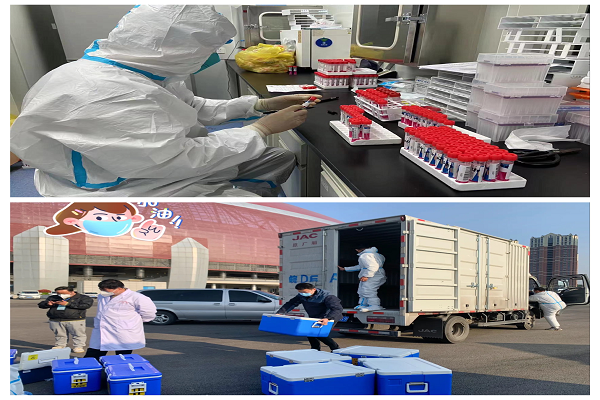 选派专业人员支援一线核酸检测实验室。3月27日,区妇计中心在接到区卫健委通知后,立即选派单位检验科2名专业人才支援区疾控中心核酸检测实验室参与战斗。他们变身“大白”,一线奋战,不分昼夜,脸上被勒出深深印痕,手被汗渍泡得泛白。以白衣为战袍,和时间赛跑,与病毒作战。另选派4名工作人员,赶赴市奥体中心核酸检测实验室参与辅助工作。