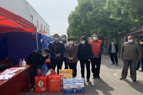 4月14日上午,区委组织部常务副部长姚伟一行赴部机关包保的田集街道杨集社区看望慰问防疫一线工作人员,并为他们送去慰问品。